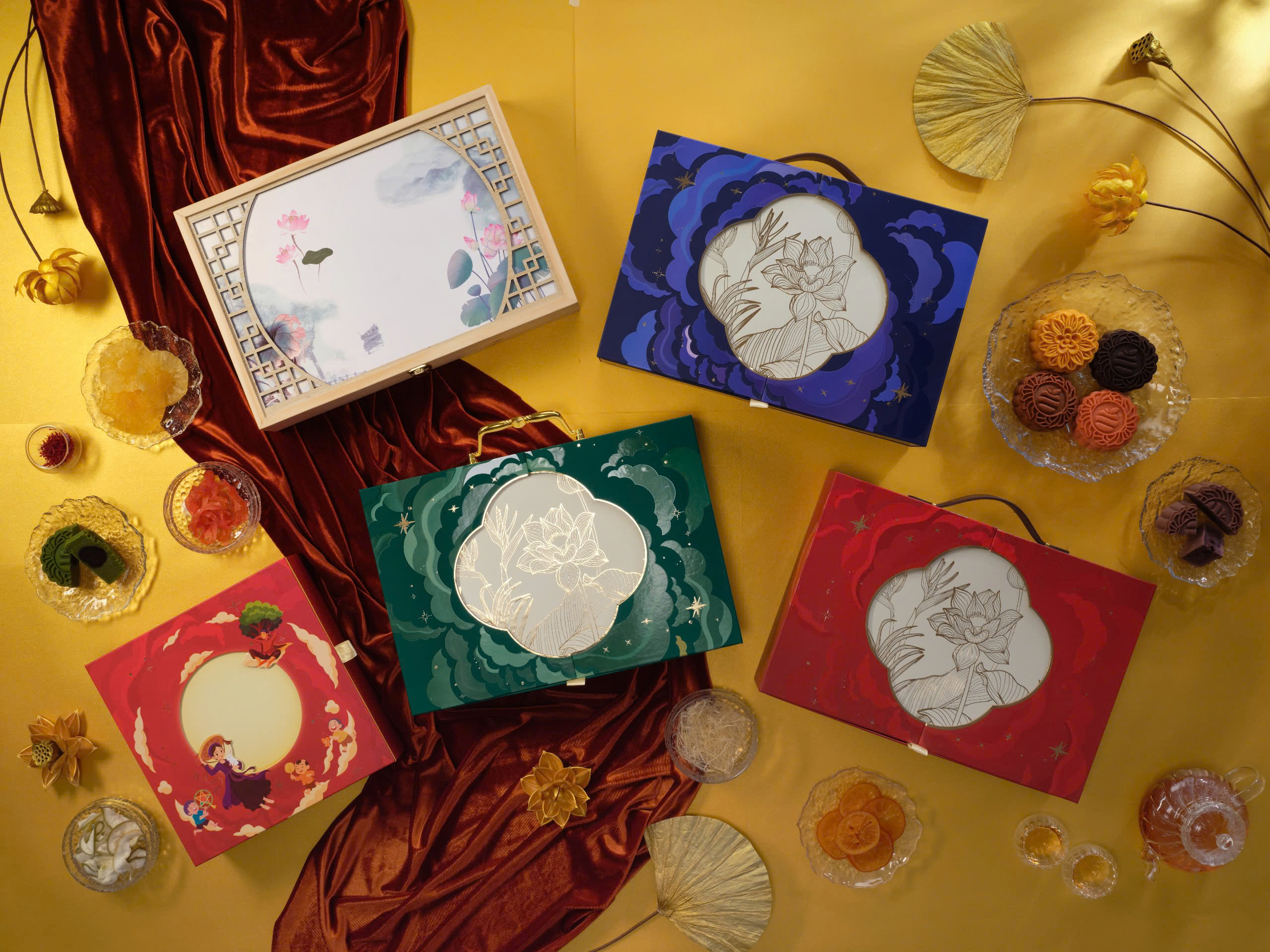 Mỗi set đều có nhiều hương vị nhân bánh thượng hạng như vi cá, yến tươi, đông trùng hạ thảo, saffron, hồng sâm, matcha Nhật… kết hợp cùng hơn 20 mẫu hộp quà thiết kế tinh xảo.