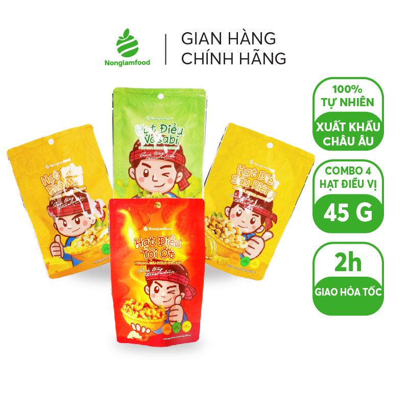 Tên sản phẩm: COMBO Hạt điều tẩm vị Nonglamfood tỏi ớt | wasabi | phô mai | sầu riêng