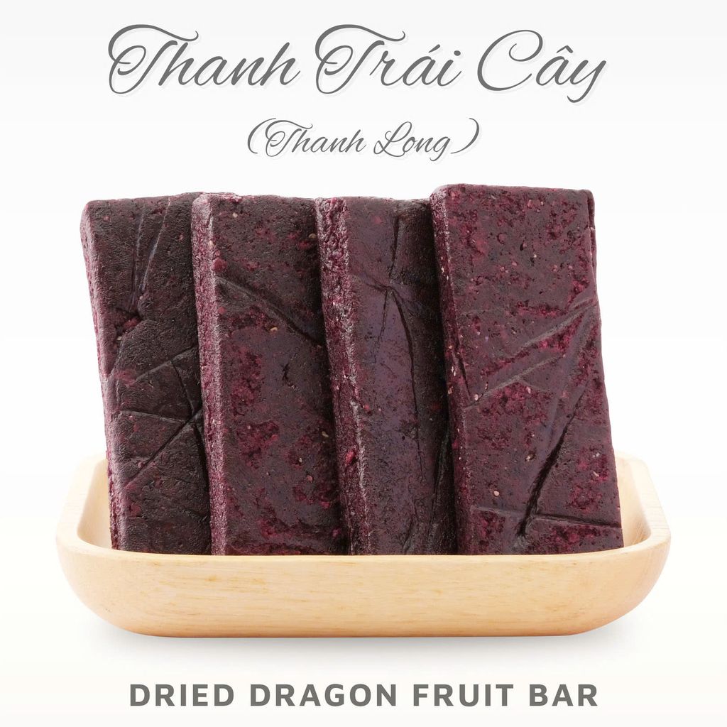 Thanh năng lượng trái cây vị thanh long chế biến từ những quả thanh long đỏ rực, tươi ngon, được sấy dẻo hoàn toàn toàn nguyên chất,