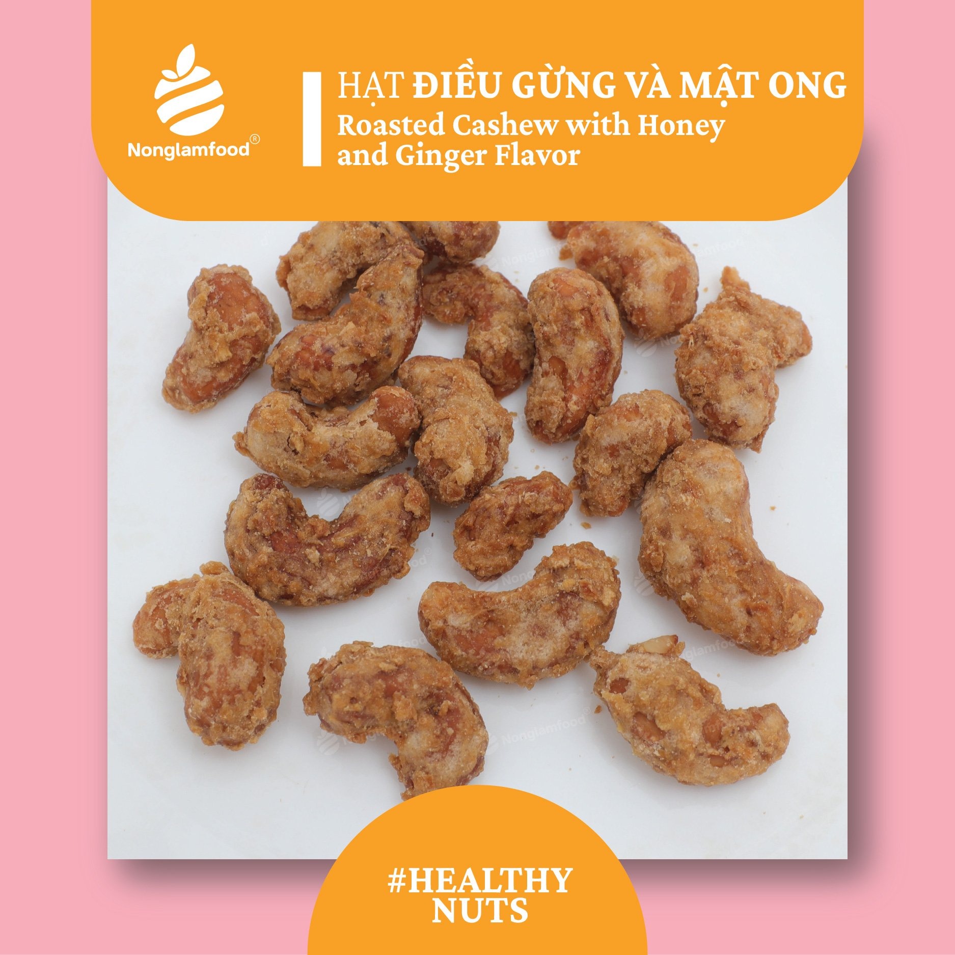 Vị cay thơm của gừng và ngọt tự nhiên từ mật ong bao phủ lấy hạt điều Bình Phước giòn rụm