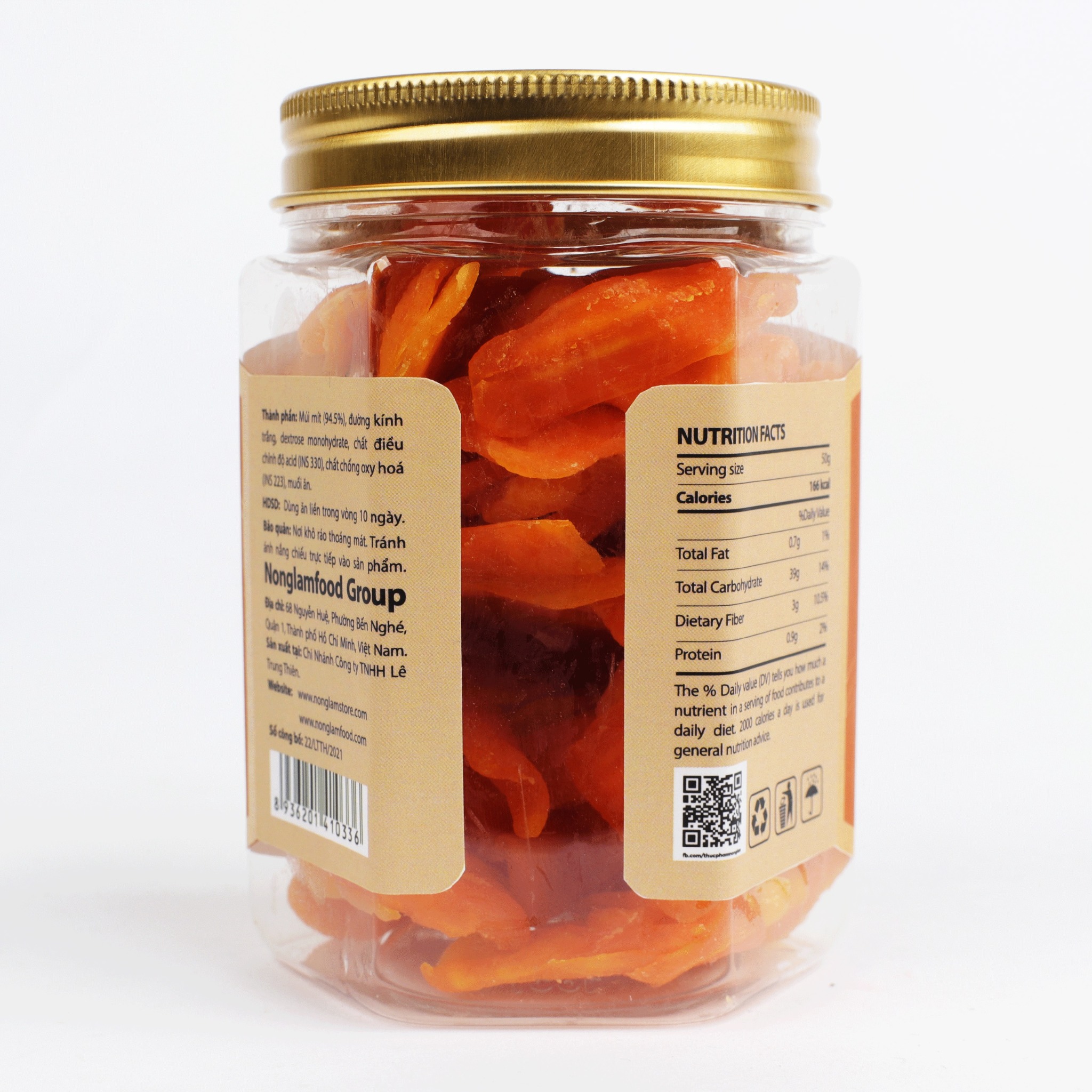 Mít sấy dẻo tự nhiên Nonglamfood có màu sắc tự nhiên, ăn vào có cảm giác dẻo vừa phải, vị ngọt tự nhiên cùng hương thơm đặc trưng.