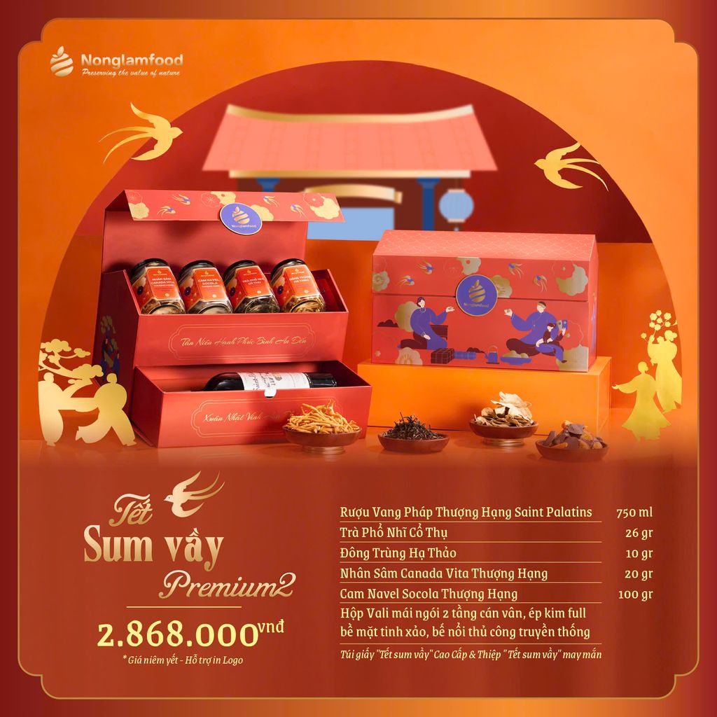 Thấu hiểu được nhu cầu của người tiêu dùng đồng thời mong muốn tôn vinh giá trị nông sản Việt, Nonglamfood xin trân trọng giới thiệu bộ sưu tập quà Tết 2025 với chủ đề "Tết sum vầy". Cả bộ sưu tập là quá trình tinh tuyển, chọn lọc hơn 50 đặc sản nổi tiếng mang đậm hương vị Tết của Việt Nam và các nước trên thế giới. Mỗi set quà mang một ý nghĩa tốt lành riêng, thay lời khách hàng gửi tới người nhận. Bên cạnh đó còn vừa mang giá trị tinh thần vừa mang giá trị vật chất mà bạn có thể dành tặng cho những người thân yêu mừng mùa xuân mới 2025