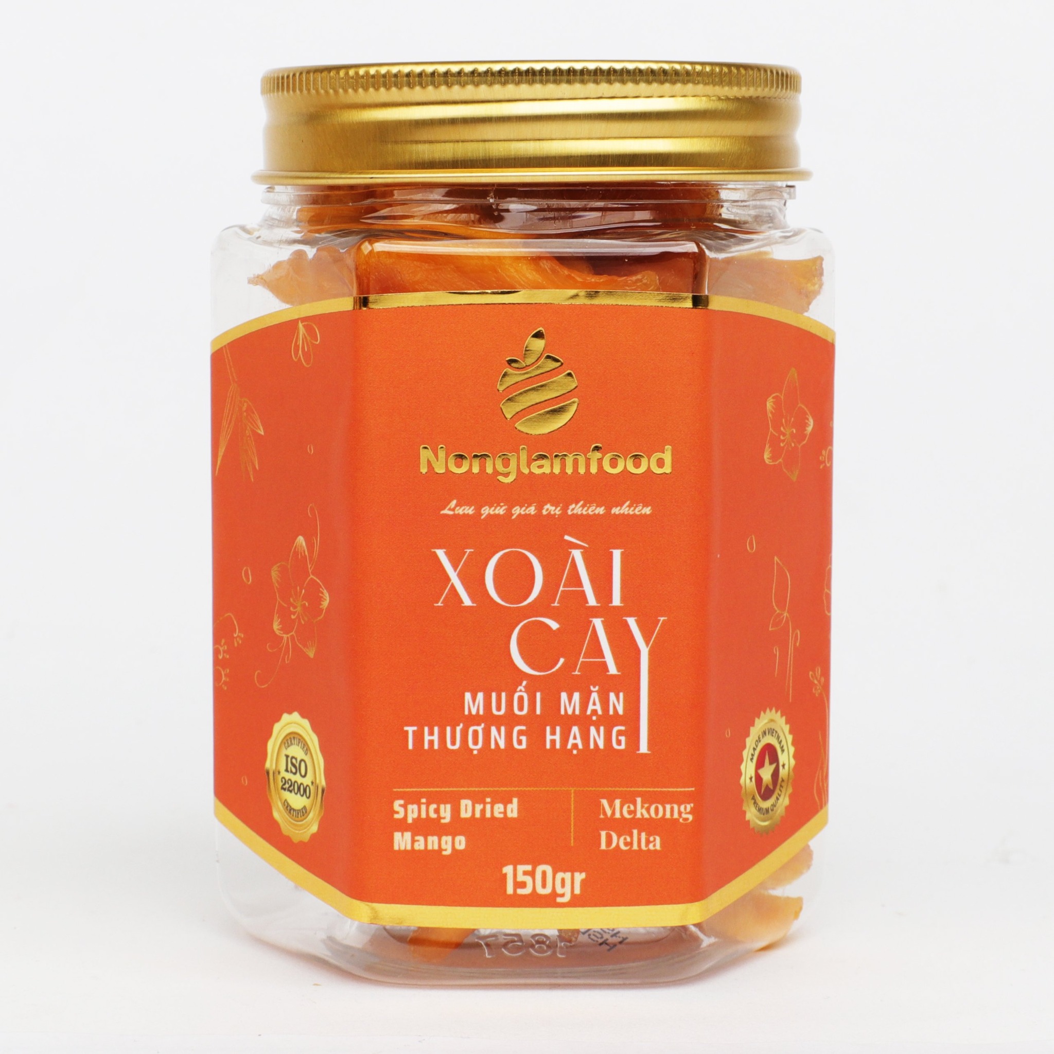 Tên sản phẩm: Xoài cay sấy dẻo thượng hạng Nonglamfood 150g | Hủ lục giác đặc biệt | Quà tặng cao cấp